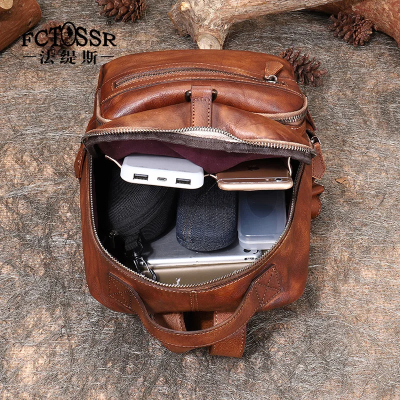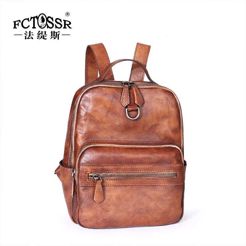 2019 FCTOSSR Women Backpack Shoulder Bag Genuine Leather Handmade Vintage Rucksack Travel Bag Femal