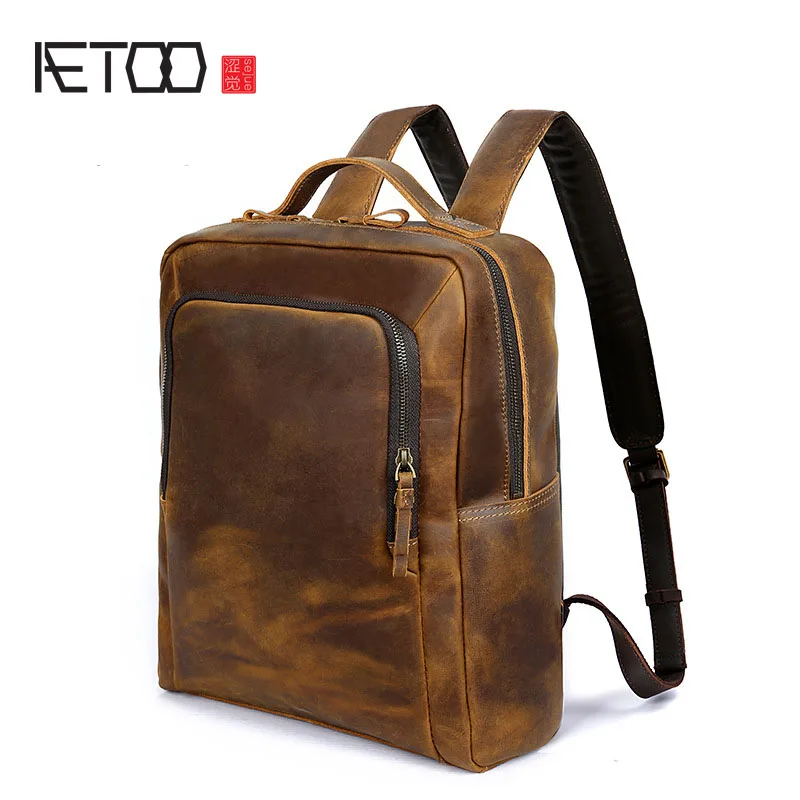 AETOO Men's shoulders foreskin backpack leather shoulder computer bag crazy horse leather man bag r