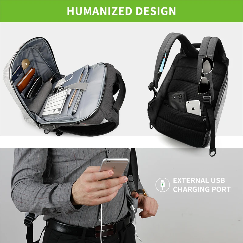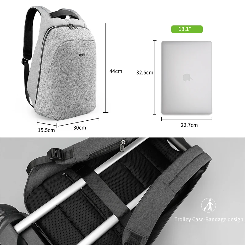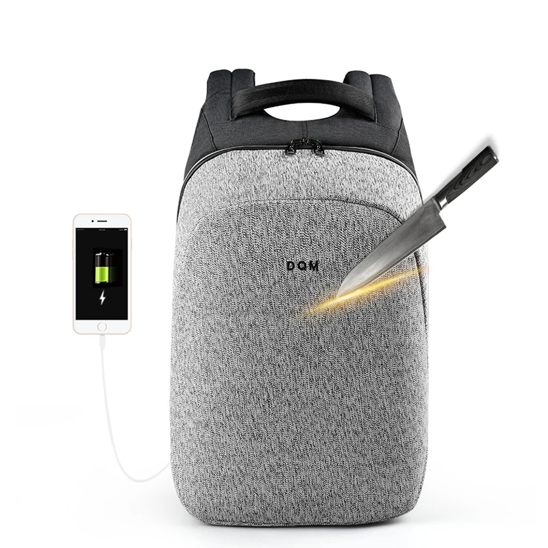 DQM top quality cut resistant 15.6 waterproof zippers casual black bag pack male mochila laptop bac