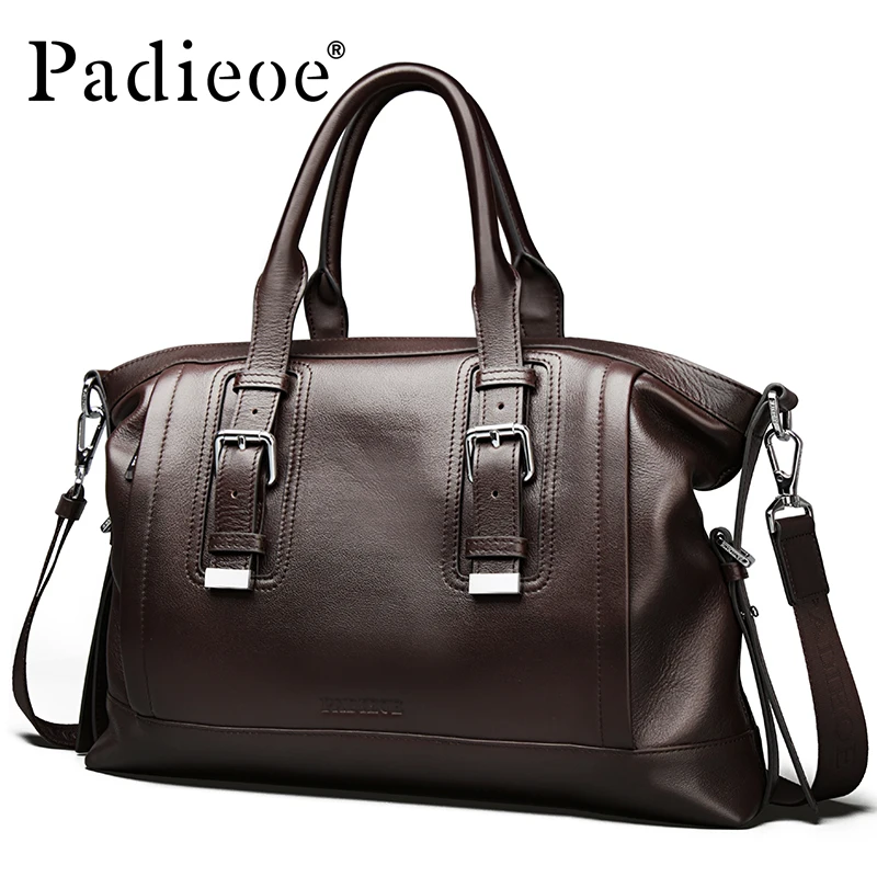 ORIGINAL Padieoe Newest Design Vintage style Mens Briefcase Messenger Bag Genuine leather Business Shoulder