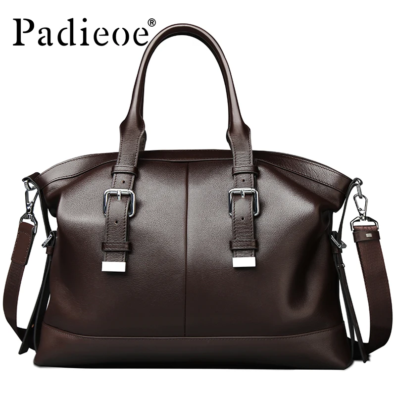Padieoe Newest Design Vintage style Mens Briefcase Messenger Bag Genuine leather Business Shoulder