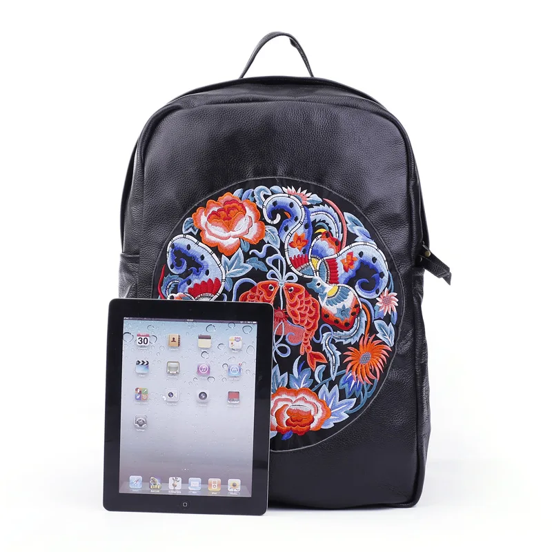 2018 new national wind Women Backpacks Genuine leather female shoulder bag large capacity embroider
