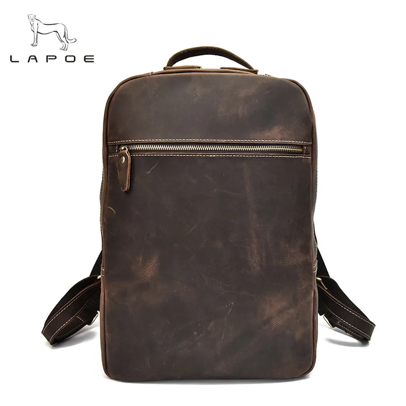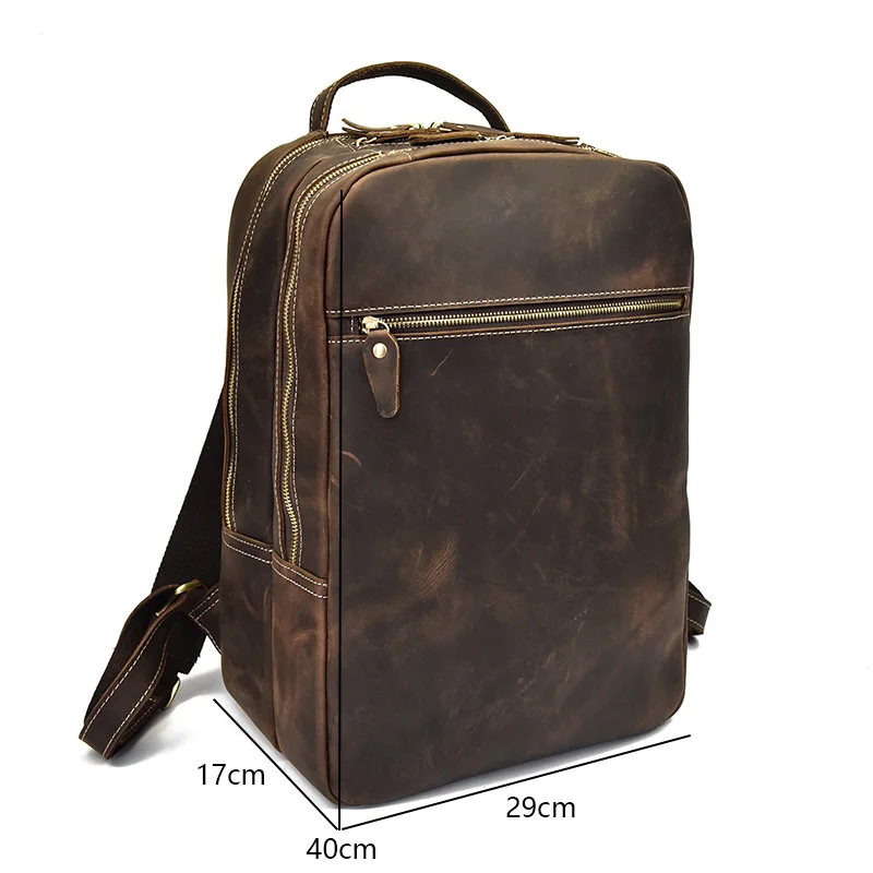 Notebook Backpack Brown Crazy Horse Genuine Leather Backpack Men Shoulder Bag Male Travel Backpack
