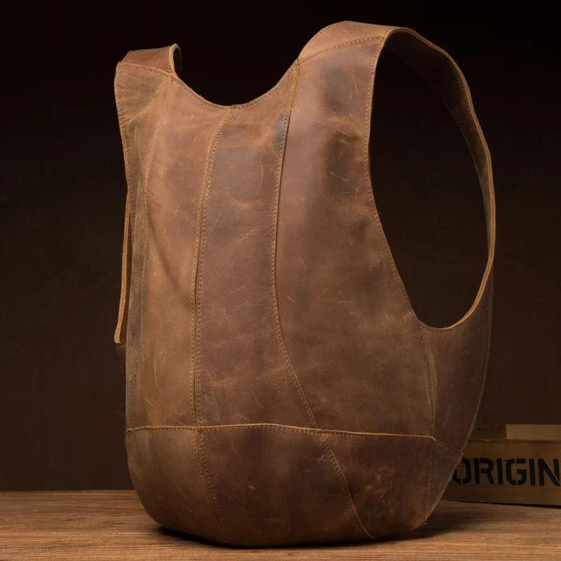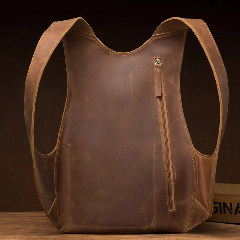 Vintage Unique Tortoise Designer Natural Crazy Horse Leather Men Backpack Cool Preppy Style Genuine