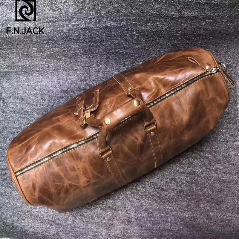 Best Seller F.N.JACK Cool Casual Tote Travel Bag Hand-held Oblique Dual-purpose Bag Cowhide Mad Horsehide Genui
