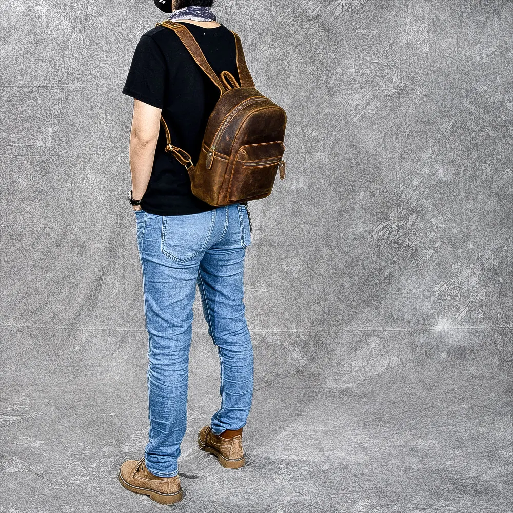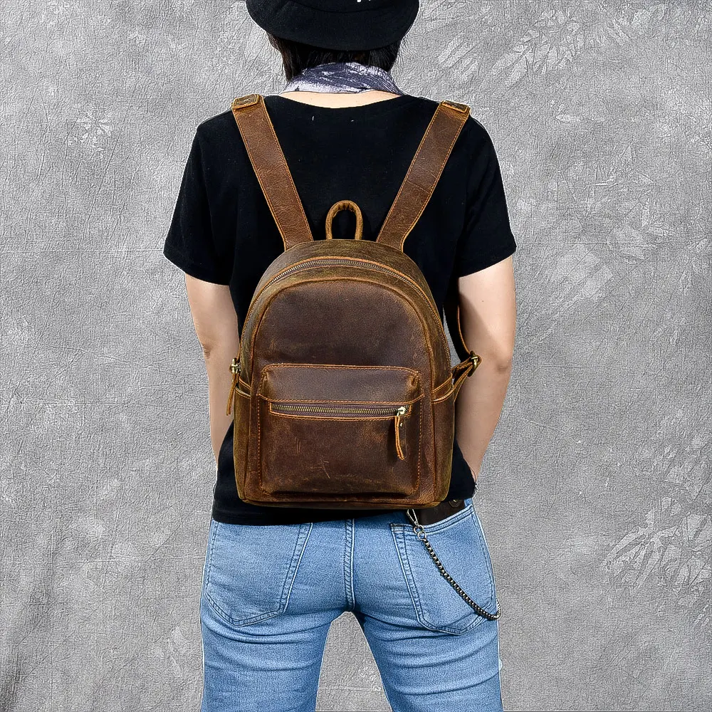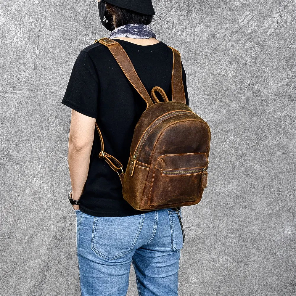 Best Seller vintage crazy horse genuine leather Oil backpack bag mochilas escolares para adolescente meninas ba