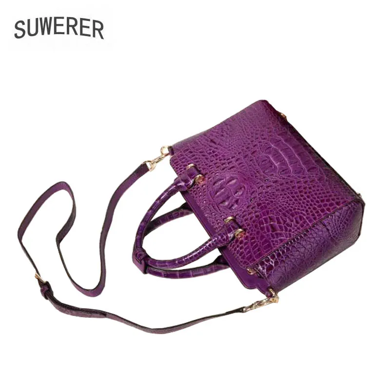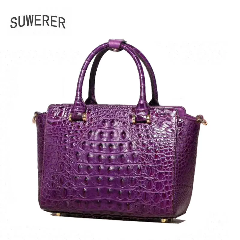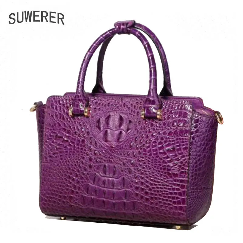 Review Top SUWERER 2019 New women bag Superior cowhide Genuine Leather handbags fashion Crocodile pattern tote