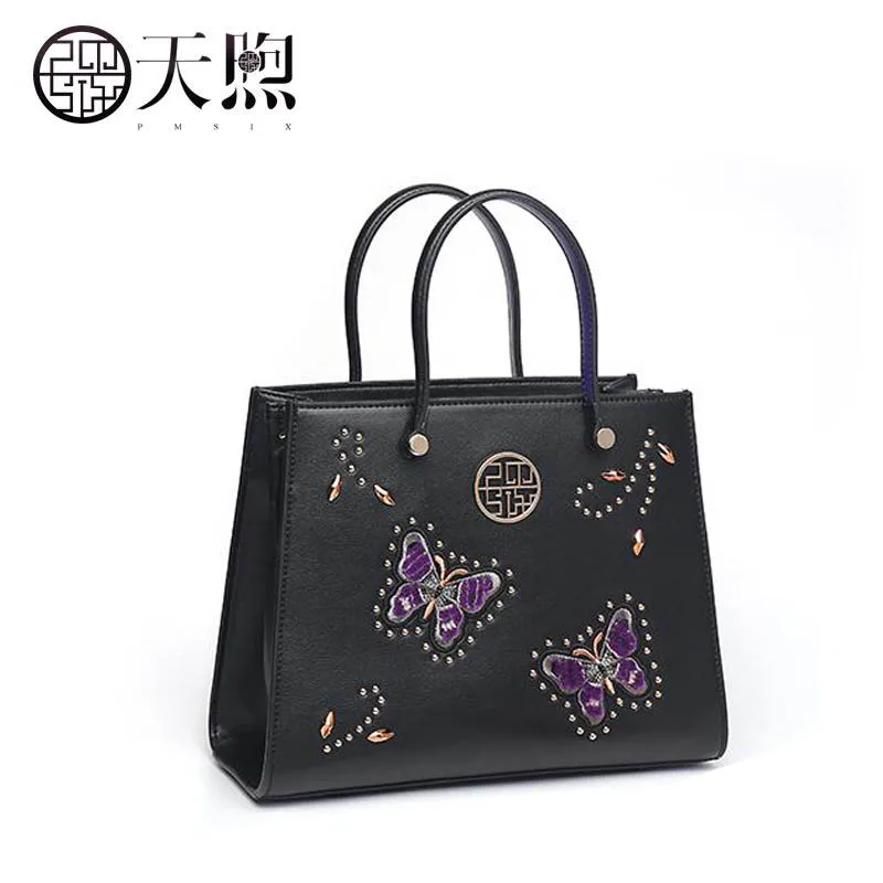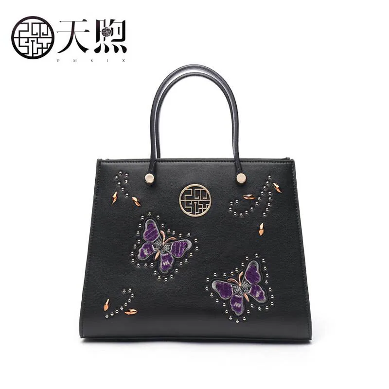 HIGH QUALITY Pmsix Handbag female 2018 new fashion atmospheric embroidery shoulder bag Atmospheric embroidery Ch