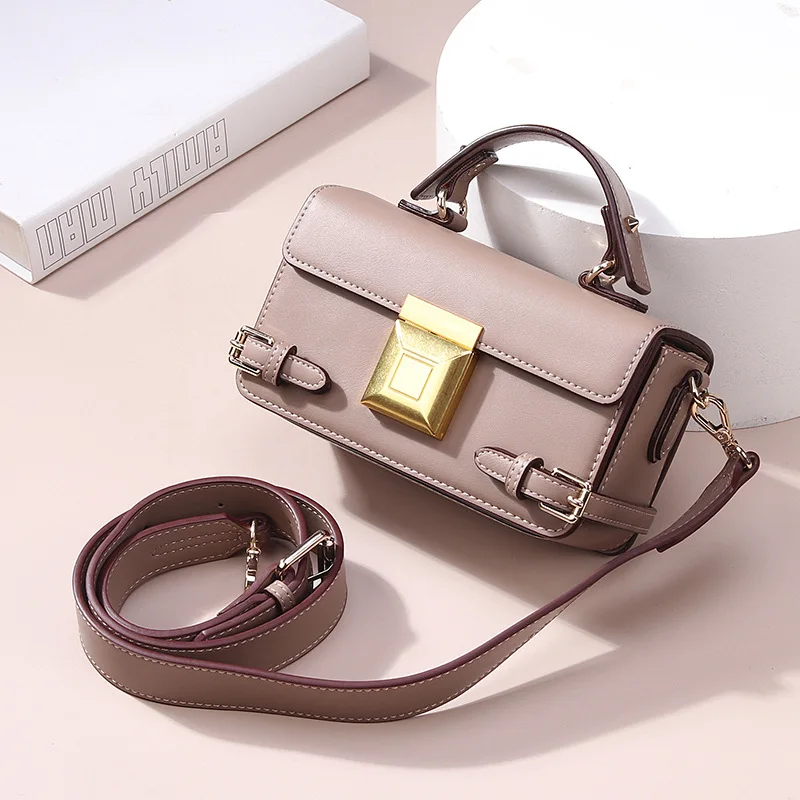 2020 Sweet Style Candy Color Women Box Bag Split Leather Girls Messenger Bag Famous Brand Lock Cros