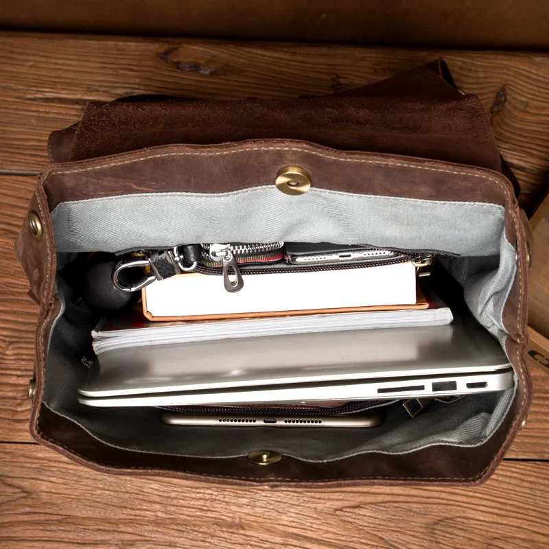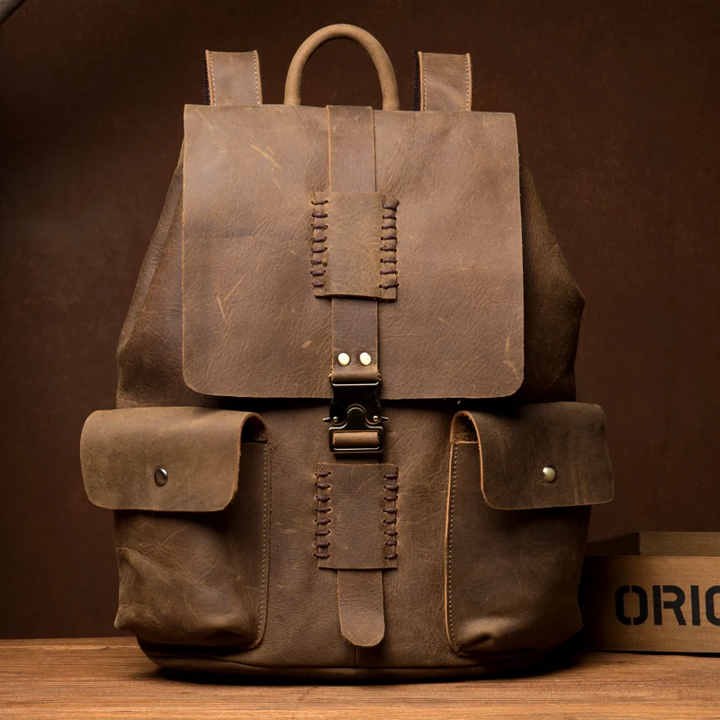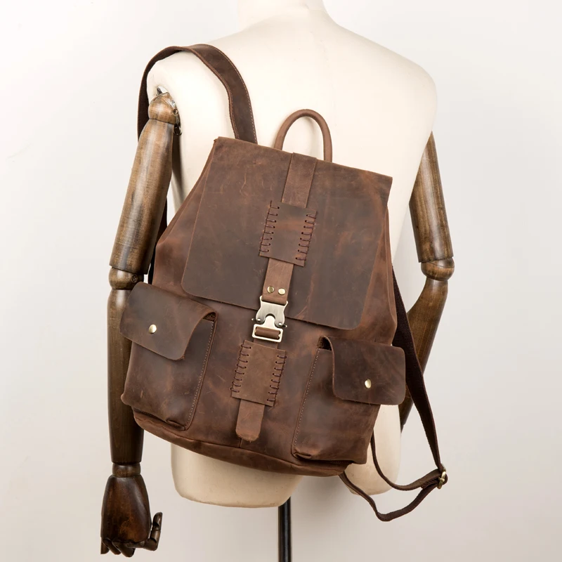 Crazy Horse Cowhide Men Backpack Genuine Leather Vintage Daypack Travel Casual School Book Bags Bra