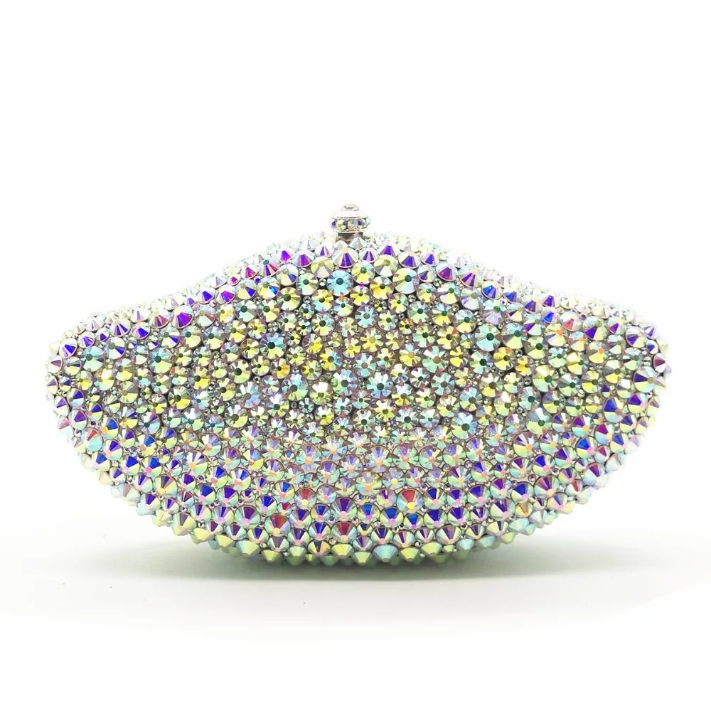 TOP lady Silver crystal Diamond Minaudiere Clutch Evening Bags Women Wedding Party Cocktail Handbag Bri