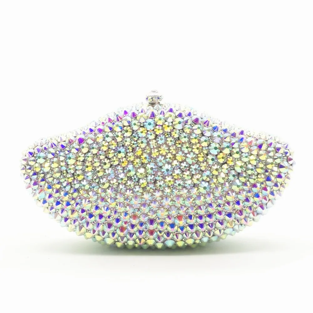 HOT Sale lady Silver crystal Diamond Minaudiere Clutch Evening Bags Women Wedding Party Cocktail Handbag Bri