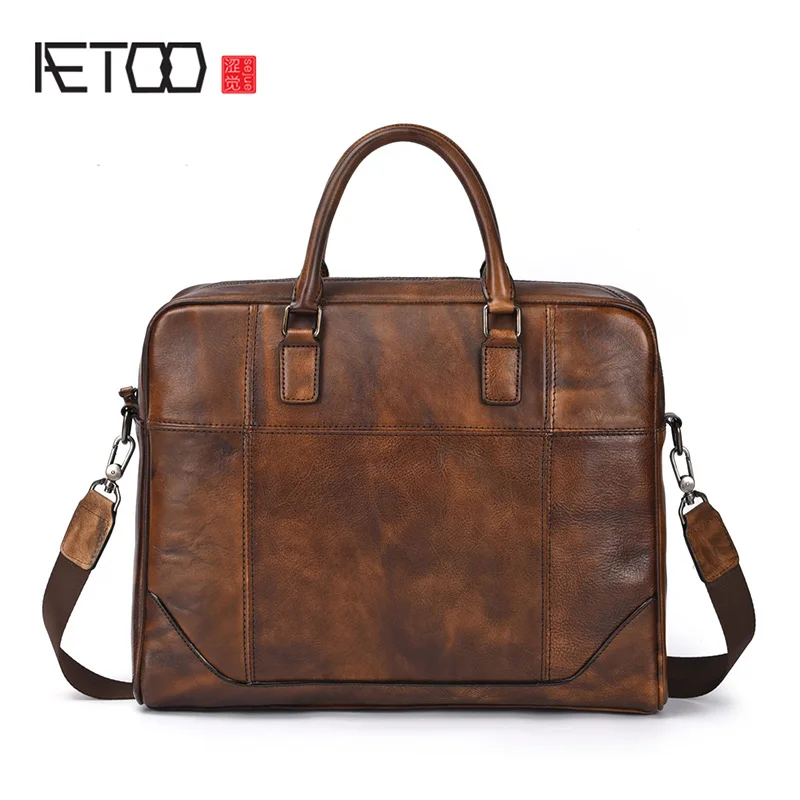 AETOO Leather men's handbag large capacity computer bag head-layer cowhide handmade briefcase vinta