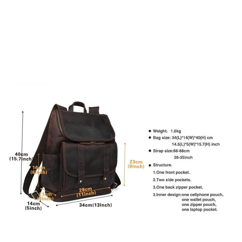 Hot Sale Men New Genuine Leather Backpacks Brand Designer Vintage Handmade School Bag High Quality Cowhide W