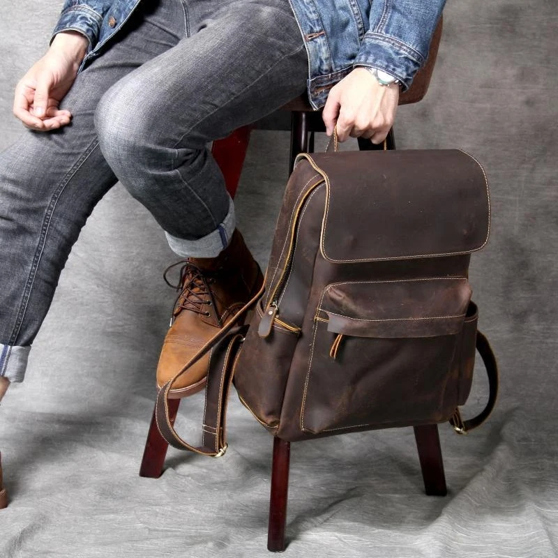 Men's handmade genuine leathe backpacks famous designer business versatile backpack brand vintage c