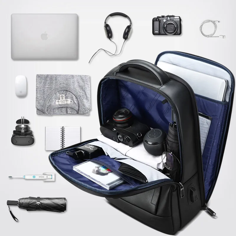 Best BOPAI laptop genuine leather backpack fashion business back pack male computer usb black leather ba