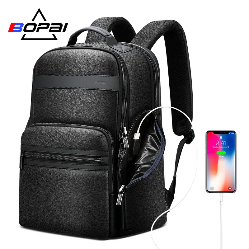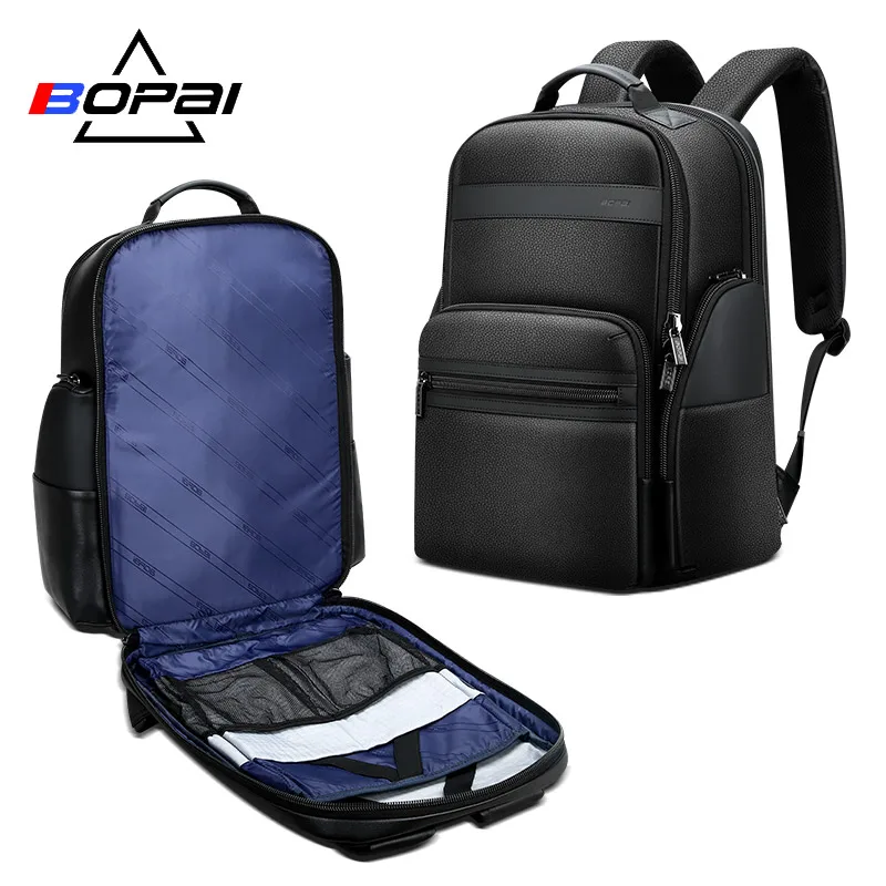 BOPAI Top Layer Cow Leather Backpack Bags Men Business Trip Travel Backpack Genuine Leather Male La
