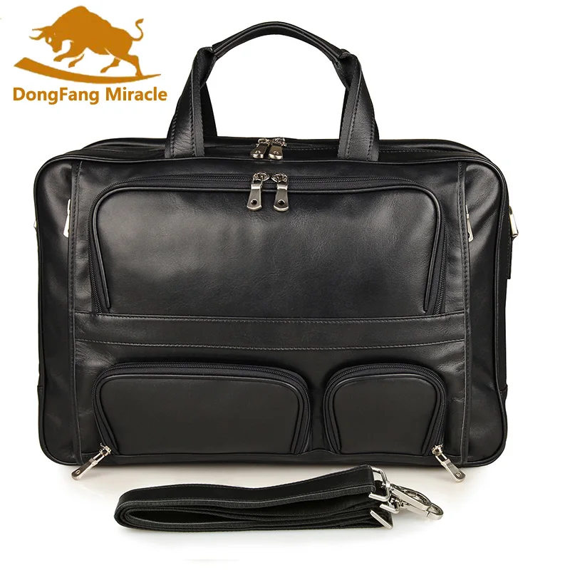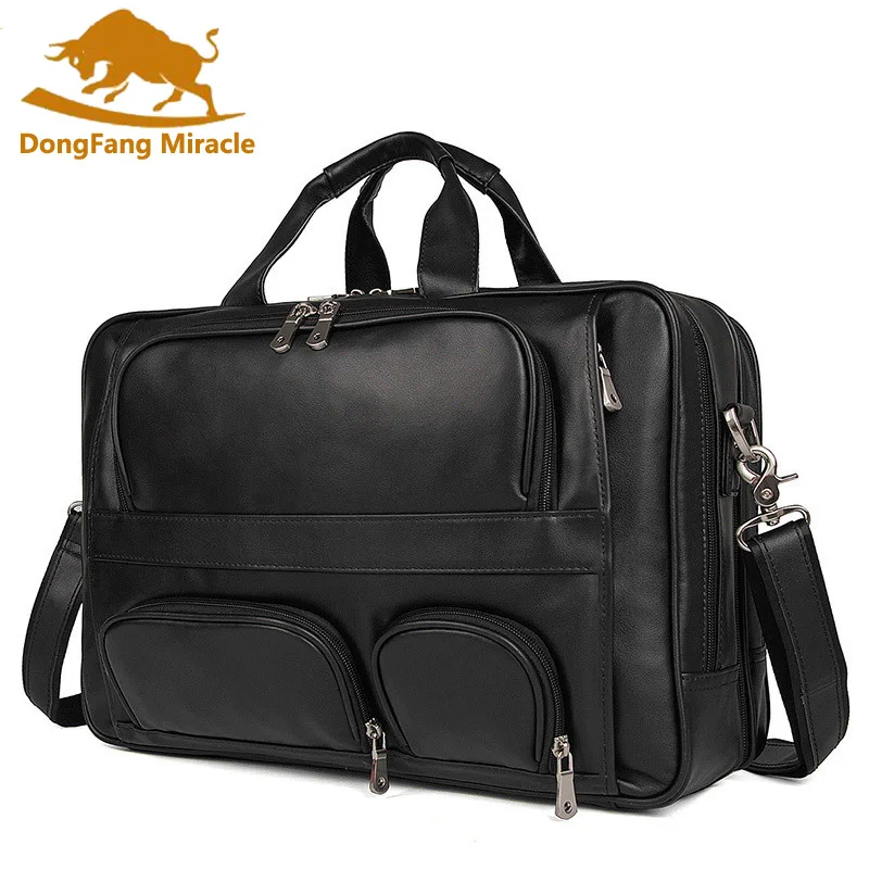 Genuine Leather Men's Briefcase Laptop Bag Big Size Business 17 inch computer bag Travel Bags Cowhi
