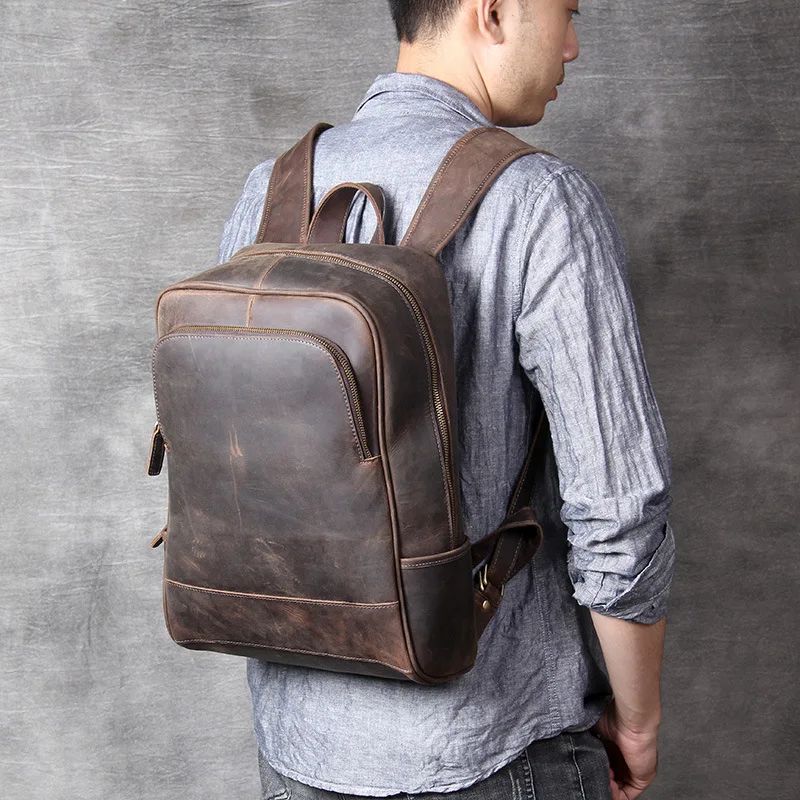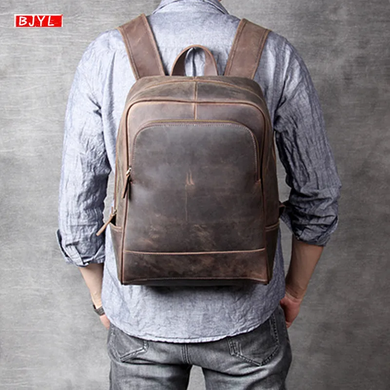 Review Top Retro first layer leather men's backpack shoulder bag male crazy horse leather original handmade co