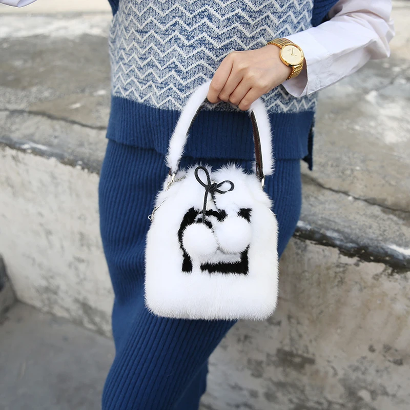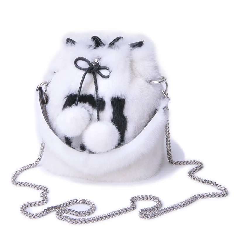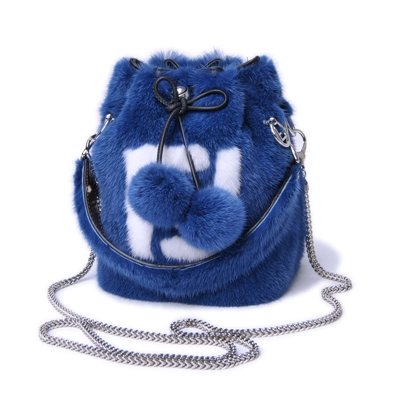 ZDFURS*2019 New Genuine Fur ArtisansWhole Fur Mink Ball with Bucket Bag Fur Square Chain Crossboy S
